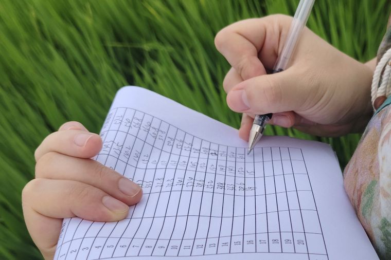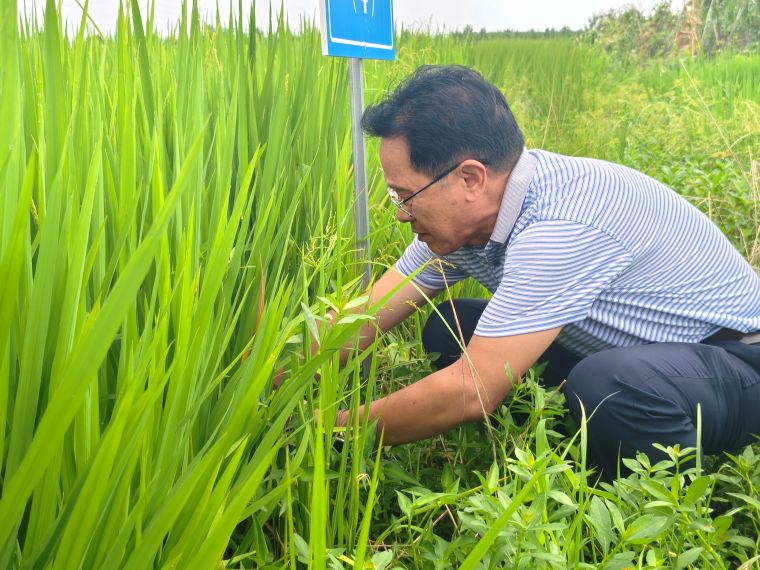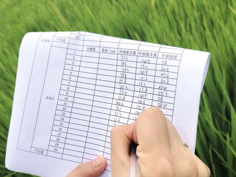 8月中旬,气温如火,正值试验示范区水稻抽穗期,四川瑞泽科技有限责任公司、四川德林元创生态环境科技有限公司董事长王德林带领技术人员前往试验区对实验组和对照组进行抽样调查检测,对比记录叶绿素含量、叶面氮含量、叶面湿度数据